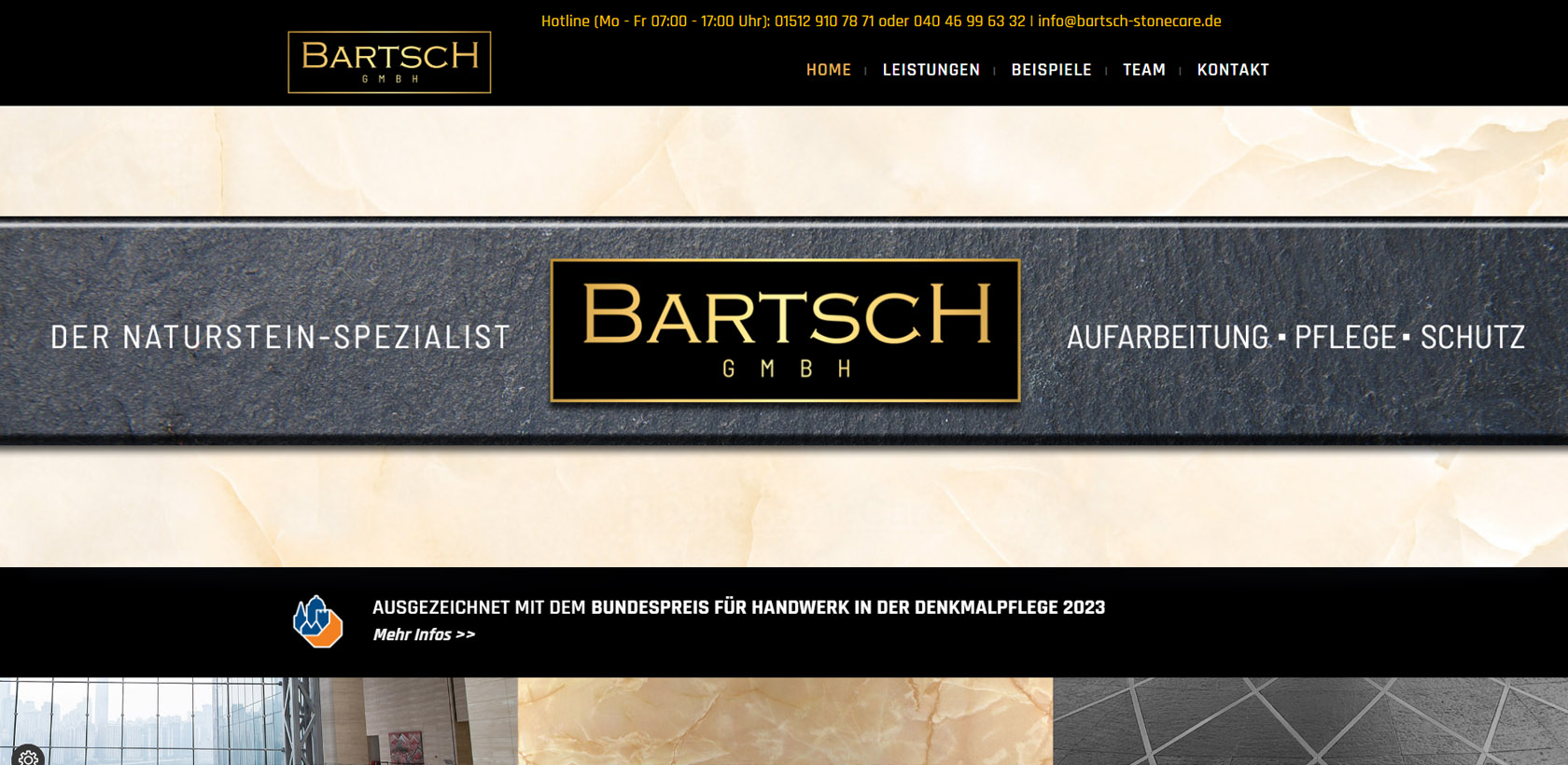 Webseite für ein Unternehmen aus Schleswig-Holstein, das sich auf die Verlegung, Reinigung und Pflege von hochwertigem Naturstein spezialisiert hat.