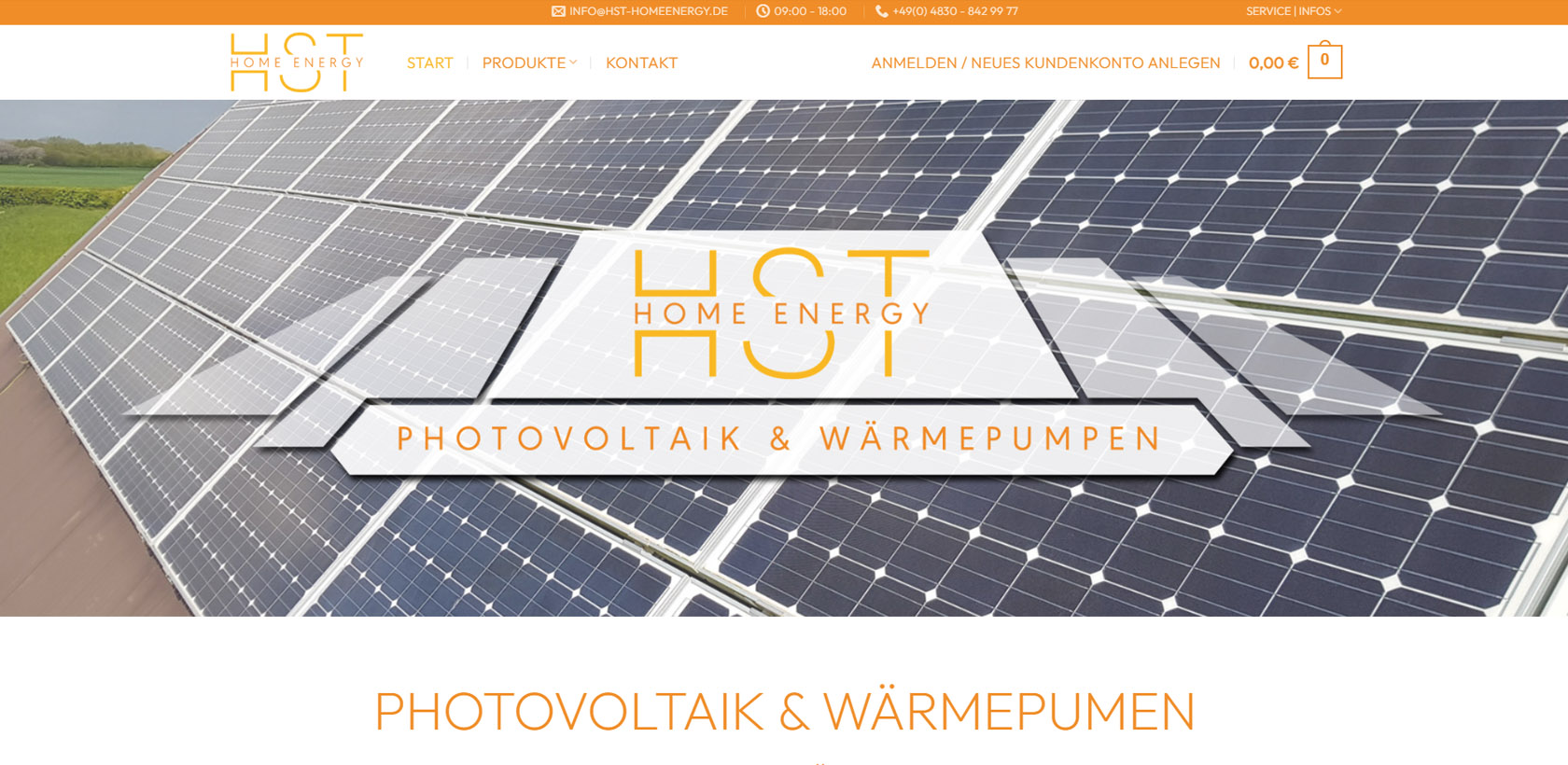 Webshop für einen Onlinehändler von Photovoltaikanlagen und Wärmepumpen.